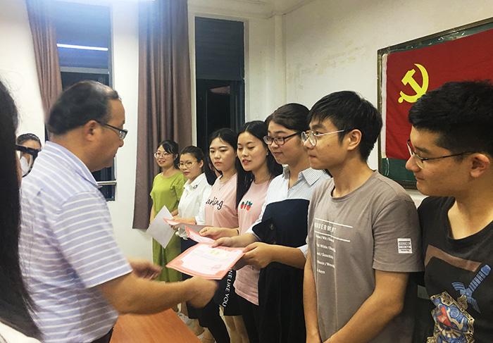 汪家庚为受表彰的优秀入党积极分子颁发荣誉证书。他对英国365入党积极分子实践团过去一年里取得的成绩予以肯定,希望入党积极分子加强学习,勇于实践,结合我院专业特色开展更多有意义的活动。(杨苏阳)