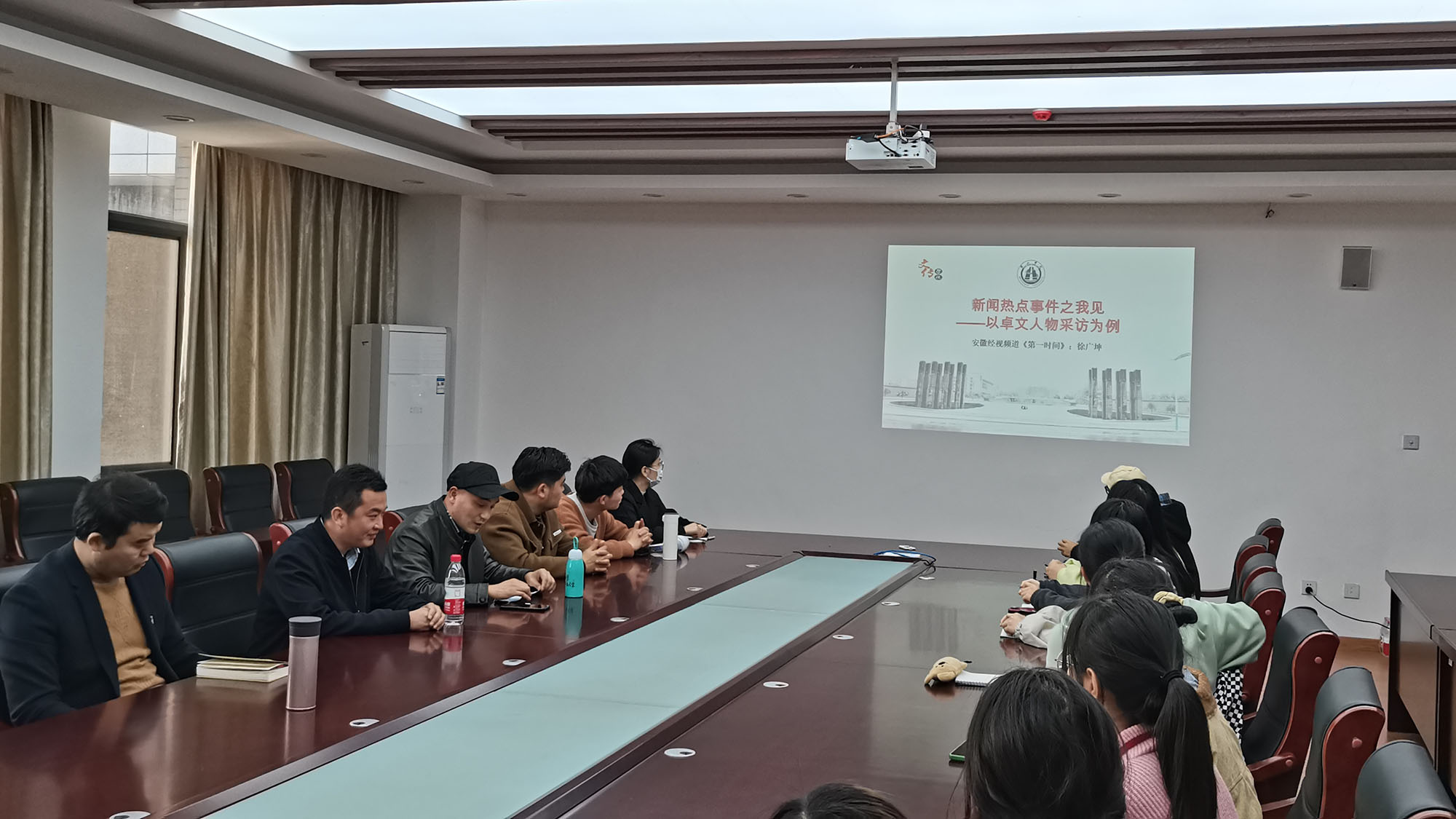 徐广坤结合自己近十五年的媒体从业经历,以“新闻热点事件之我见”为题,针对我校外籍教师卓文在首届“外国人讲安徽故事”中荣获一等奖这一热点事件,与师生分享了如何做好新闻采访中的人物专访。