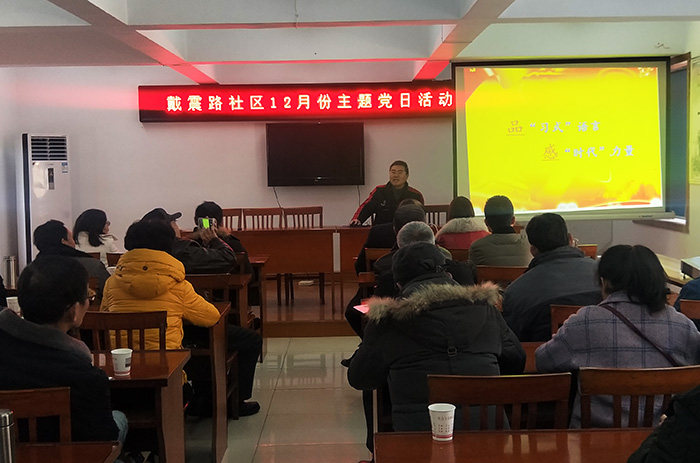 12月17日下午,英国365党委书记汪家庚、副院长王俊峰与教工党员一行11人赴戴震路社区服务中心为社区党员送去一堂党课讲座。戴震路社区党委书记胡小燕主持讲座,40多名社区党员参加此次党日活动。