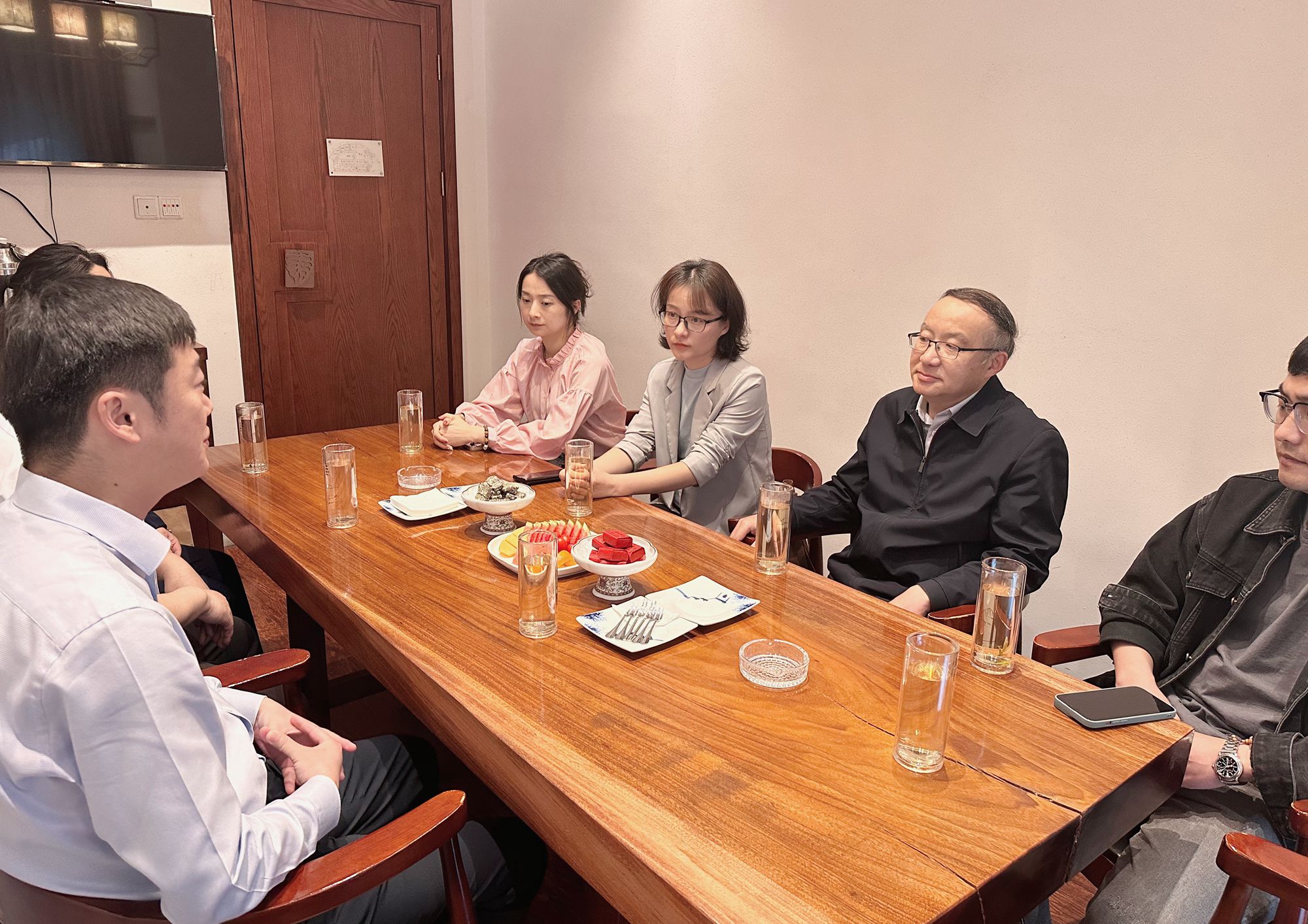 当日上午,在杭州竹岩科技有限公司,汪家庚一行与杭州竹岩科技有限公司浙视觉融媒实验室、杭州滨惠商贸有限公司、杭州东辉影视创意有限公司等三家企业进行座谈交流。三家企业创始人刘乃武、刘斌、夏东辉分别介绍了公司发展历程、组织架构与经营情况,并结合现阶段市场对传媒类人才的需求及自己的创业经验,对学院人才培养提出宝贵的意见。