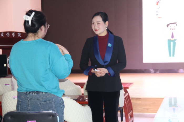 讲座内容丰富,涵盖礼仪重要性、面试前的准备、面试过程中的表现技巧等方面。培训会上,吴宁宁用大量的实战经验、幽默的语言和多样的互动形式让同学们理解和掌握面试礼仪的精髓。讲座还用短片展示了礼仪的“73855”原则、“TPOR”原则,着重讲解了面试着装的规范。同学们通过理论学习和现场互动实践,掌握了如何自信地介绍自己以及如何处变不惊地应对面试场景中的挑战。同学们纷纷表示,将会把培训会上所学到的知识应用到求职和实际生活中,展现文传学生的精神风貌和智慧。