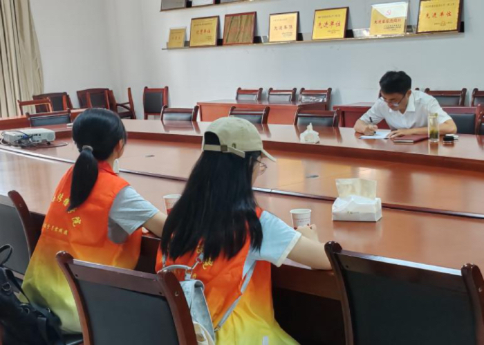 在实地调研期间,实践团队成员前往当地党史县志档案局,采访了党史专家郑贤杰老师,郑贤杰介绍了金寨的党史知识和红色历史,团队成员认真做好记录并进行整理,同时研读当地赠送的党史书籍,加强对当地党史的了解。