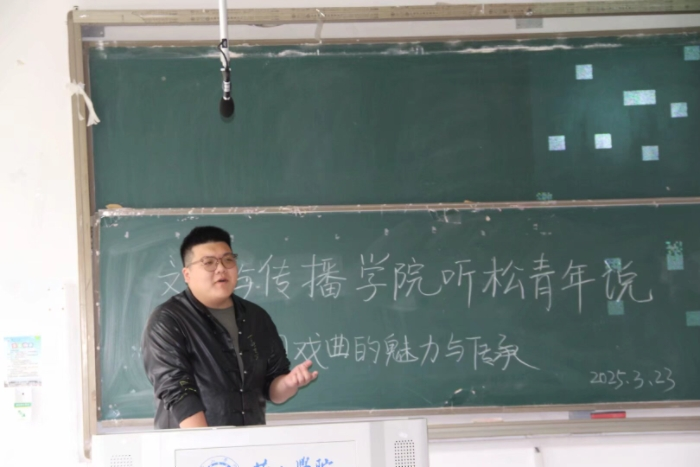 3 月 23 日,365上市公司学生会在文端楼2206教室举办“听松青年说”主题活动。活动以“戏曲的魅力与传承”为主题,由2023级戏剧影视文学专业朱粟赫担任主讲,吸引了众多学生参与。